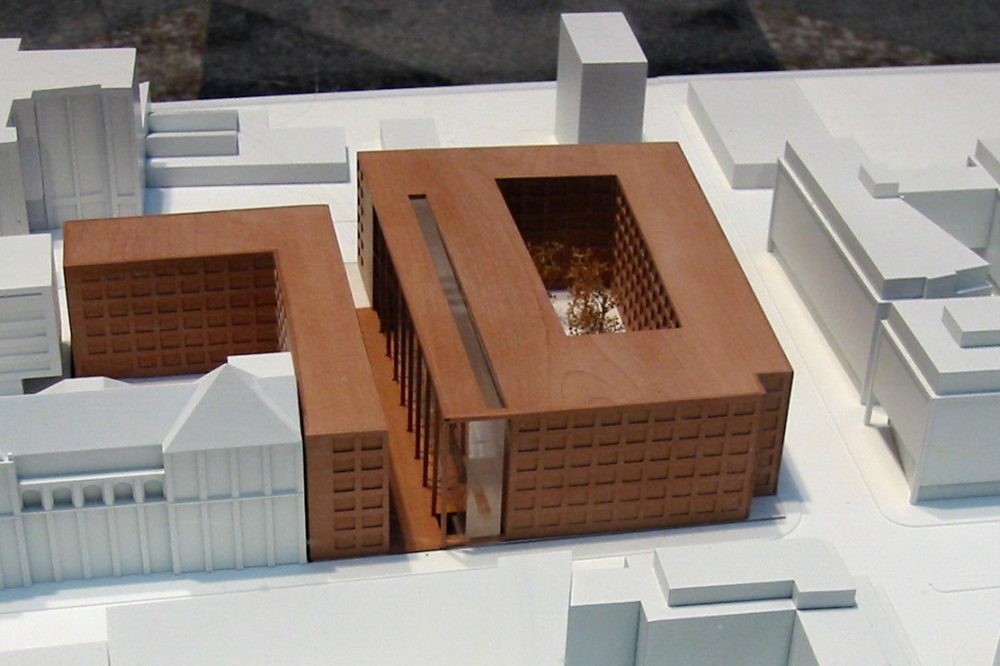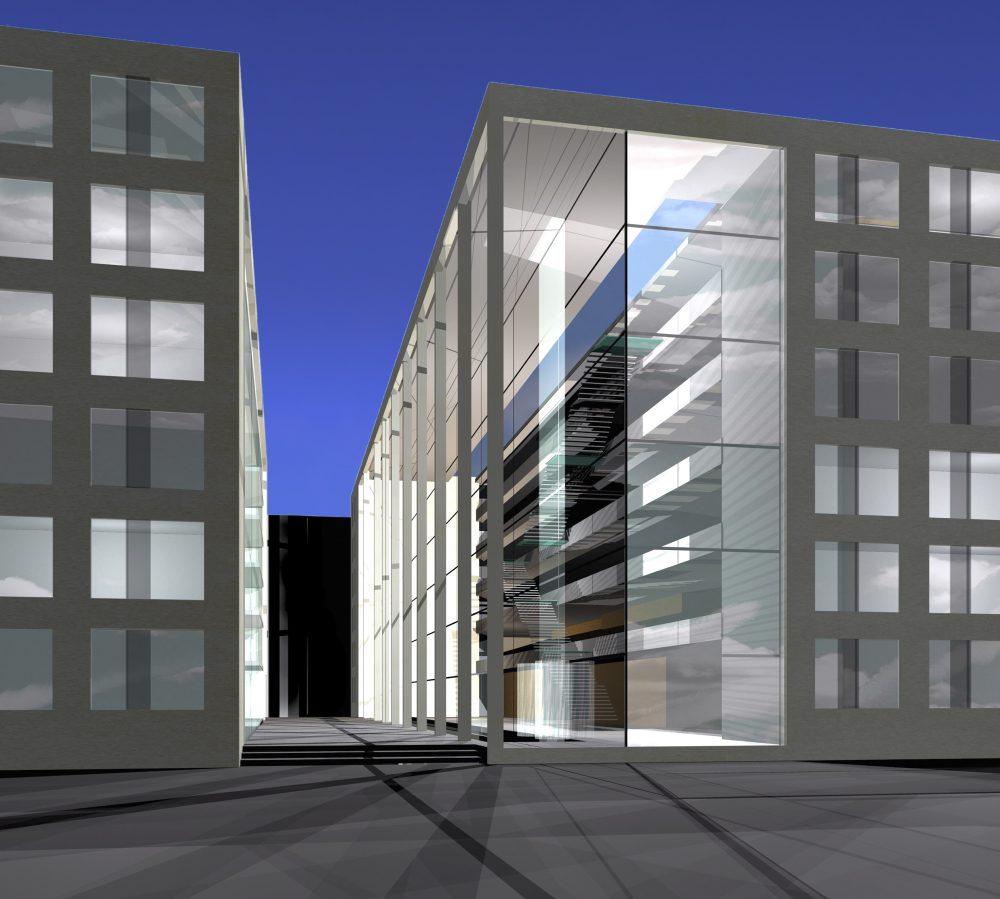 Mit einer sechsgeschossigen Bebauung in zwei getrennten Baukörpern und der damit verbundenen Schließung des bestehenden Blocks an der Ecke Seidl- und Denisstraße passt sich das Justizzentrum wie selbstverständlich in das städtebauliche Gefüge ein. Mit der Gerichtsgasse wird das Passagenthema der Umgebung aufgenommen und zur Erschließung der Hauptzugänge abseits der lärmintensiven Seidlstraße genutzt.