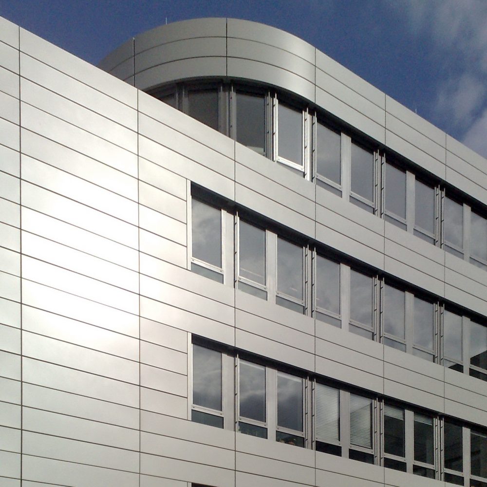 Der Neubau schließt die geplante Blockrandbebauung nach Osten hin ab. Das im Wesentlichen viergeschossige Gebäude entwickelt sich entlang der Baulinie und präsentiert sich mit seinem Haupteingang an der Südost- Gebäudeecke zum Bahnhofsvorplatz. Ein Staffelgeschoss betont diese für die stadträumliche Situation wichtige Blockecke zusätzlich mit seiner expressiven Dachform.
