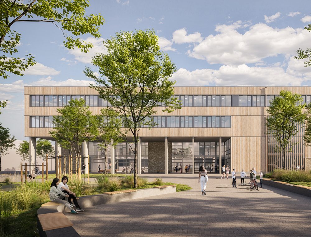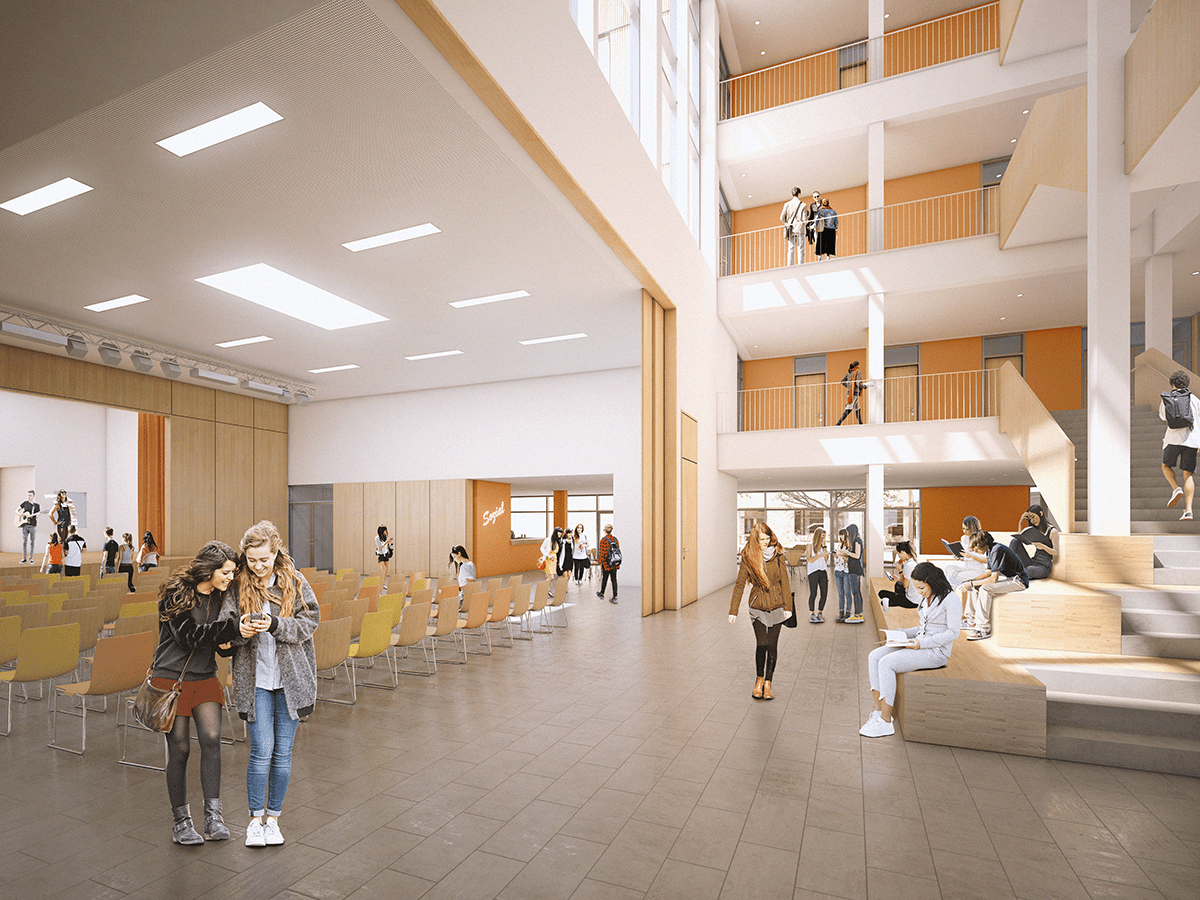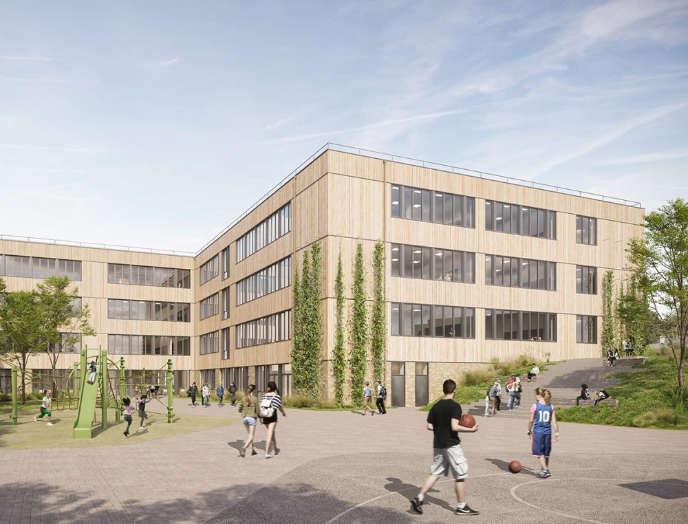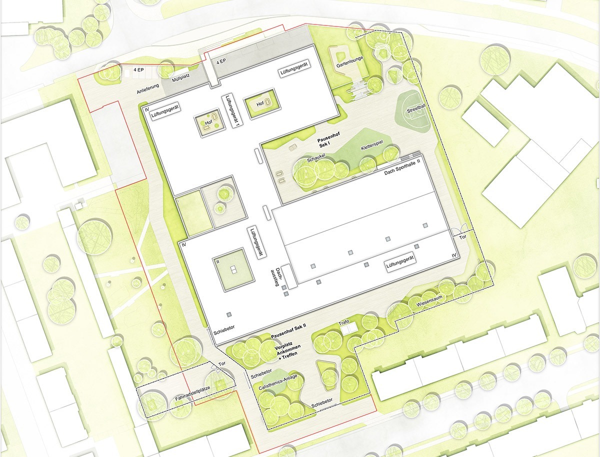 Die neu zu gründende 6-zügige integrierte Gesamtschule mit einer 4 Feld Sporthalle entsteht auf dem innerstädtischen Grundstück am Wendenring.