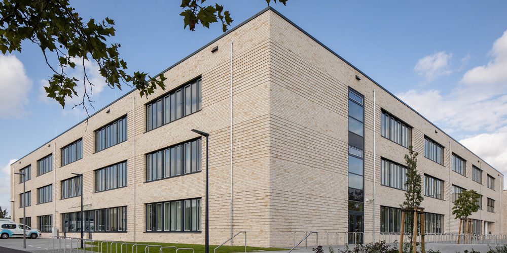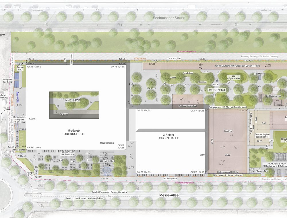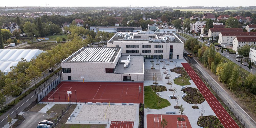 An der Messeallee entstand nach knapp 2 jähriger Bauzeit die neue 5-zügige Oberschule mit einer 3 Feld Sporthalle in Leipzig-Wiederitzsch.